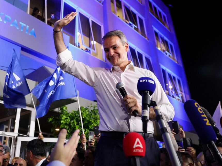 زعيم يمين الوسط اليوناني، كيرياكوس ميتسوتاكيس، يحصل على تفويض لتشكيل حكومة جديدة بعد فوزه بولاية ثانية بسهولة. فاز ميتسوتاكيس وحزبه “الديمقراطية الجديدة” بنسبة 40.55٪ من الأصوات، مما منحه الأغلبية المطلقة في البرلمان الذي يتألف من 300 مقعد. يعتبر حزبه واحدًا من أقوى الأحزاب الشعبية في الاتحاد الأوروبي.